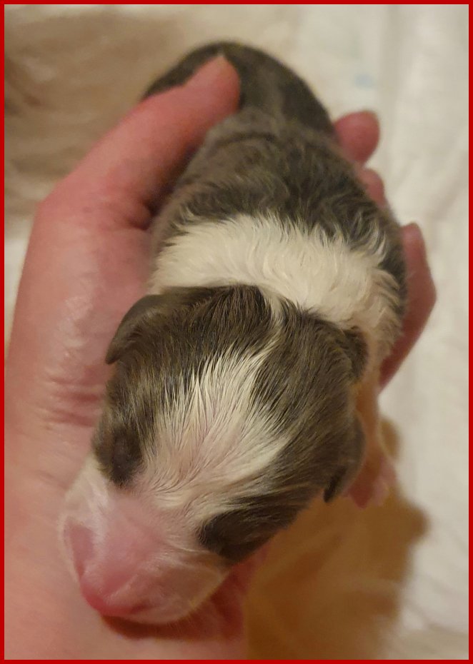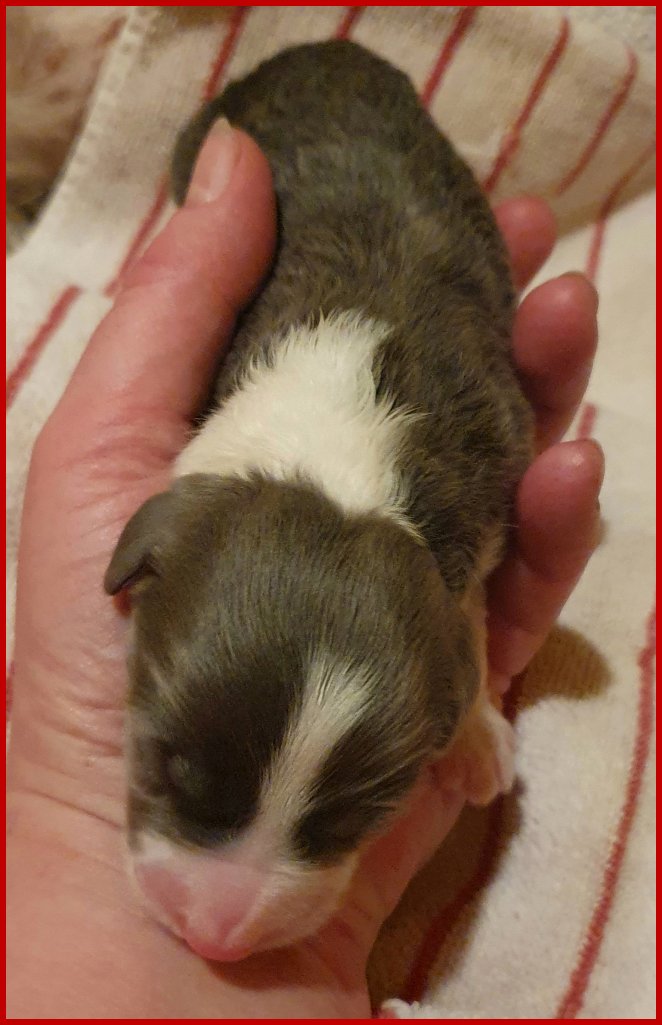 | dann noch diese wunderschöne blau/tricolour Hündin mit 345 Gramm geboren! |