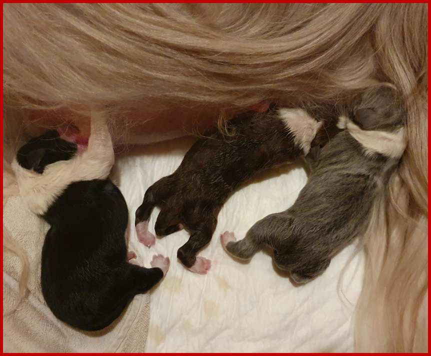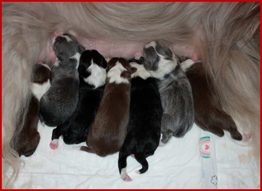 | Leider war dieses Mal kein Fawn Baby dabei, aber wir haben jeweils ein Pärchen in schwarz/tricolour, braun/tricolour & blau/tricolour und als Pluspunkt noch ein wunderschönes Mädchen in braun/tricolour!!! |