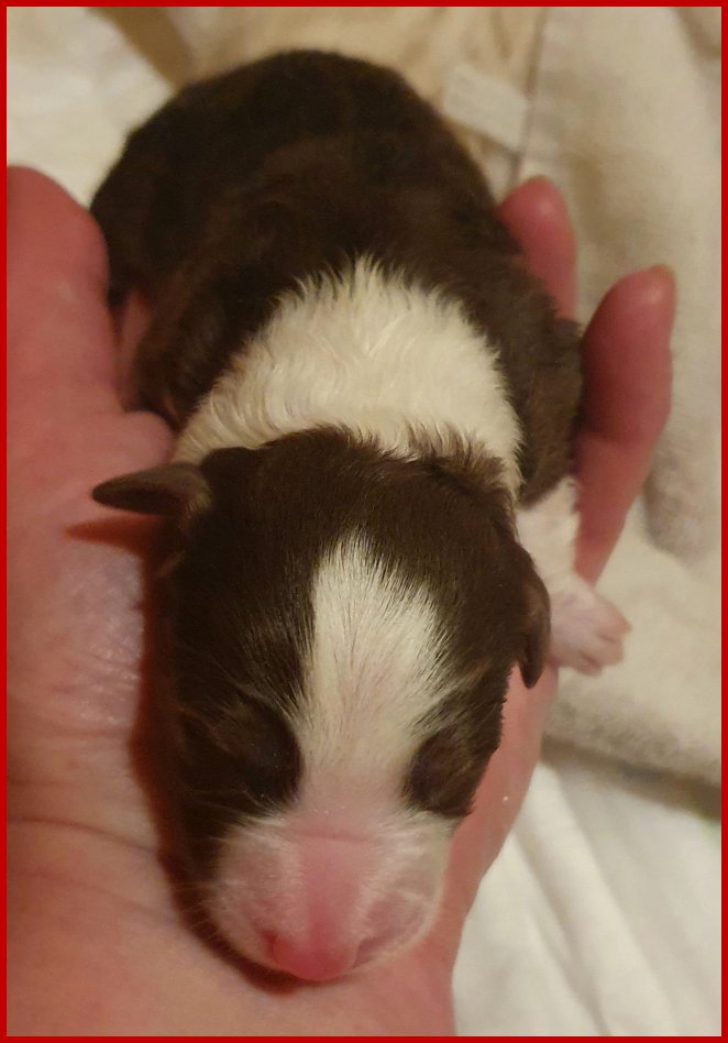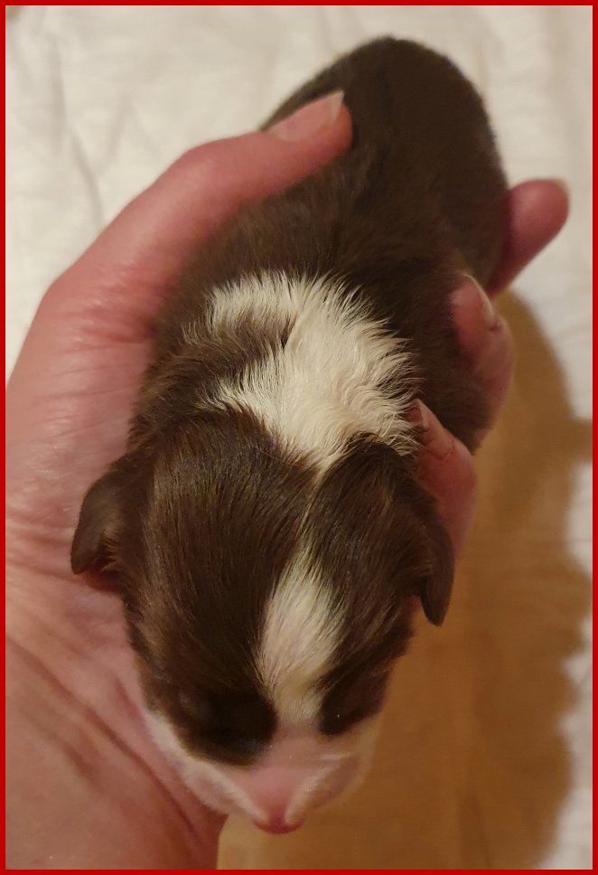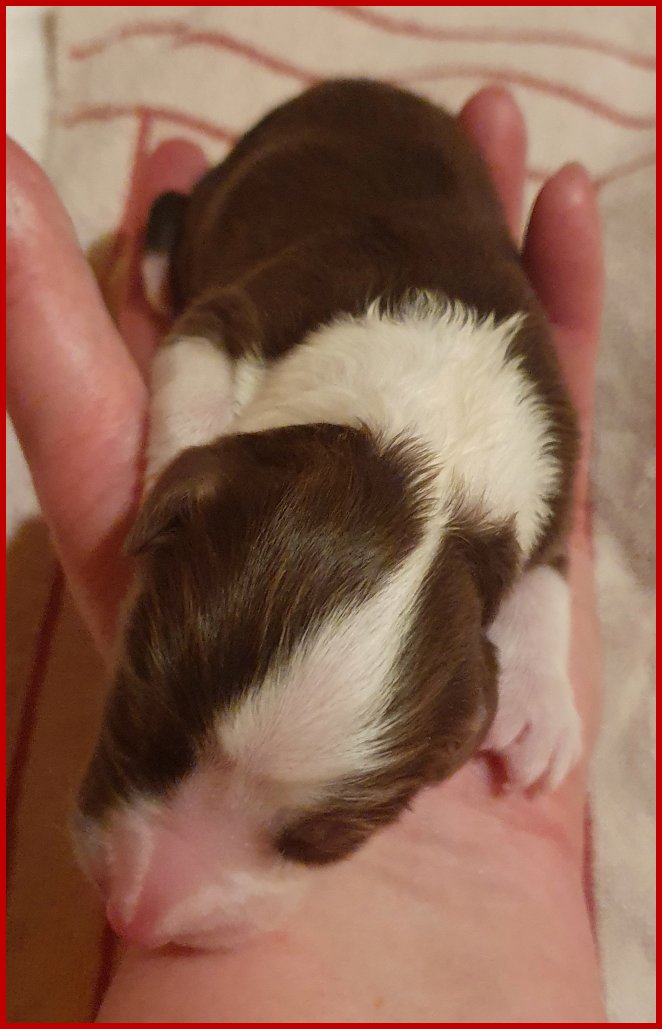 | erstgeborene braun/tricolour Hündin gelegt hat. |