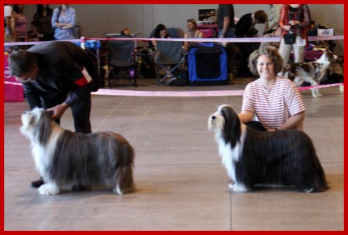 Elegante, sehr schön behaarte Hündin mit femininem Kopf, Scherengebiss, schöner Hals, Rücken muss sich noch etwas festigen, gut gestellt und gewinkelt, freie raumgreifende Bewegung, ruhig und sicher.