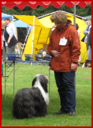4 Jahre alte, sehr kompakte Hündin mit einem vorzüglichen Haarkleid. Sehr schöne äußere Linien, korrekter Kopf, dunkle Augen, komplettes Scherengebiss, sehr schön gewölbter Nacken, gut Brusttiefe und schöner, gerader Rücken. Sehr leichtfüßig in der Bewegung, sehr schöne Präsentation.