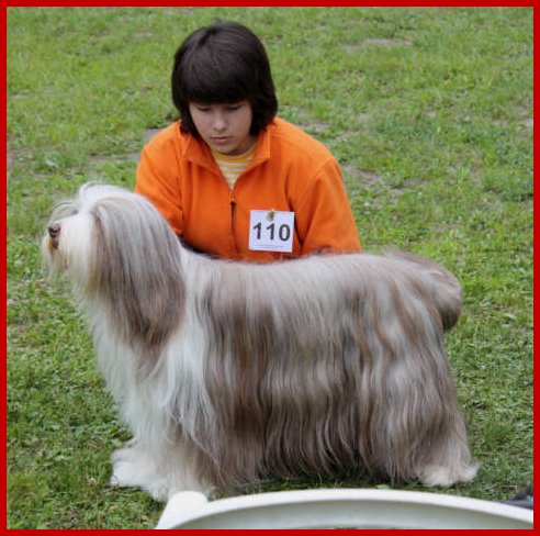| Aber leider mochte der Richter wohl keine braunen Beardies und so bekam sie, wie viele andere Hündinnen an diesem Tag auch, leider nur ein "SG".