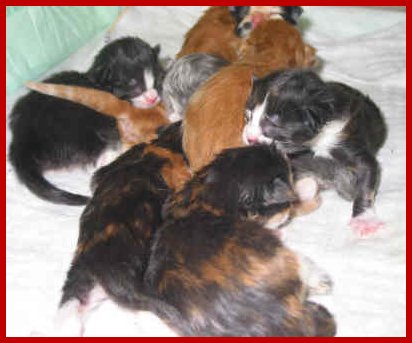 mit ihren sechs Geschwistern, als sie alle zwei Tage alt waren!