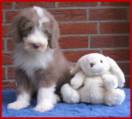 | Und unser Mister Charming "Harvey" hätte auch zu gern eine "eigene" Familie und präsentiert Euch heute stolz sein perfektes "Sitz!" (auch er kann natürlich super toll schon "Platz!") mit "Beardieschmelzblick" & seine heutigen 6230 Gramm!!! | ||