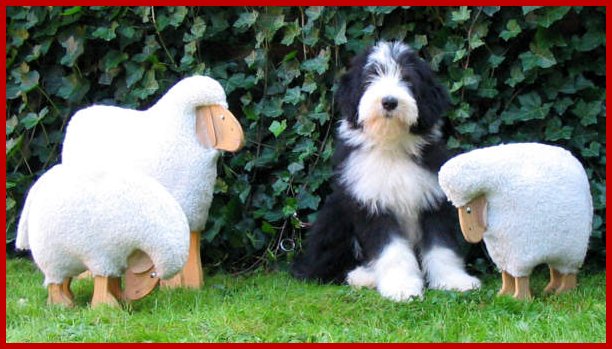 | "Haven" trainiert das hüten lieber an Mara & Lea, als mit den Schafen, denn mit denen und seinem heutigem Gewicht von 12,49 kg kann man super schmusen!!! | ||