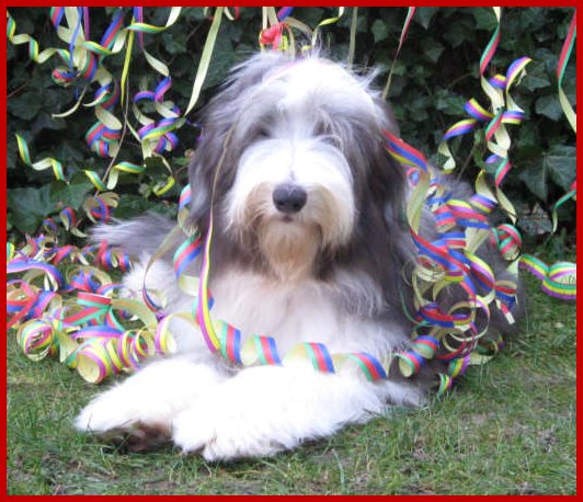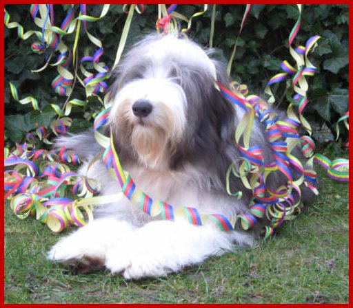 | Na, dann schaut Euch doch mal an, wie er sich schon mal mit den Luftschlangen vergnügt hat!!! |
