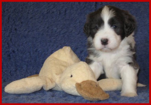 | "Jannty" zeigt mal wieder was sie für ein liebes Mädchen ist und posiert, mit gekonntem Beardieblick und ihren heutigen 2370 Gramm, für Frauchen!!! | ||