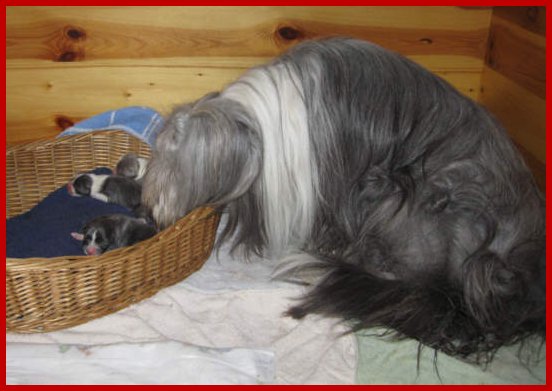 sie mit Herrchen in der Wurfkiste in Ruhe verarbeitet!