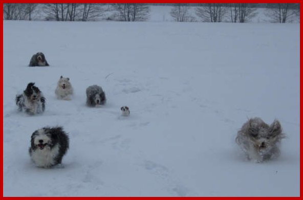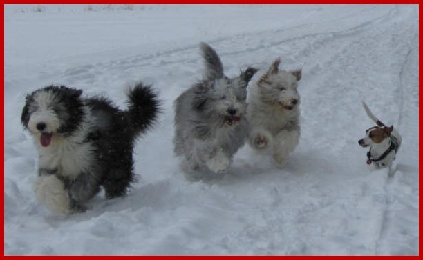 | Wenn jetzt in ein paar Tagen auch noch "Kinley" auszieht, wird es hier langsam ruhig, aber noch ist ja "Kate" da und die sorgt, zusammen mit "Maddy", schon für Stimmung in unserer Bude! Außerdem bekommen wir ja bald wieder Beardie-verstärkung in Form von unseren "L-Wurf Babys", so das bei uns bestimmt keine Langeweile aufkommt!!! |