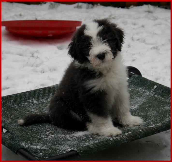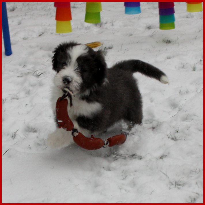 "Frauchen, das weiße Zeug ist echt lustig, aber auch mächtig kalt!!!"