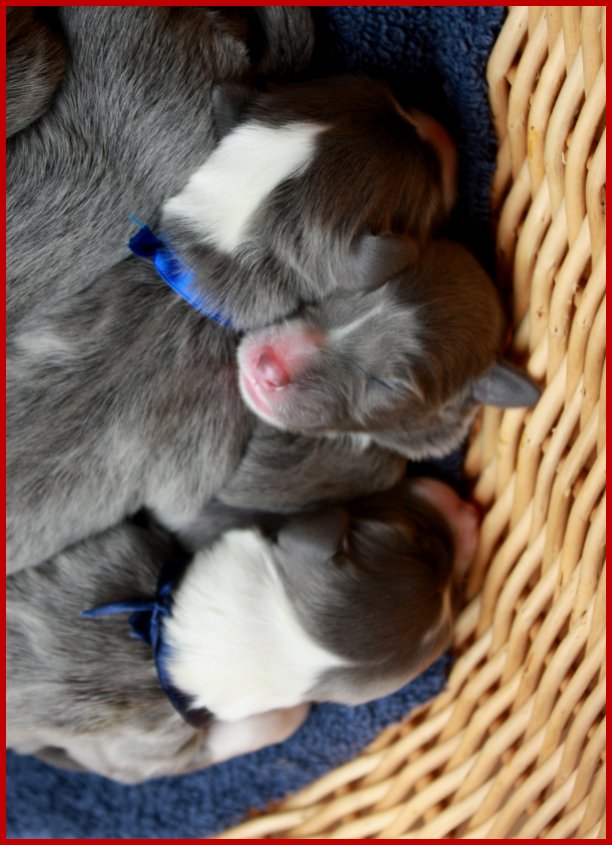 Oben links 2ter Rüde (Royalblau), oben Mitte 4te Hündin (weiß) & |