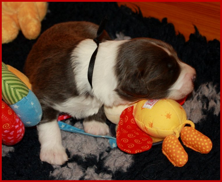 Danach hatte "Phoebe" ihren Kuschelplatz neben dem Rasselball gefunden ...