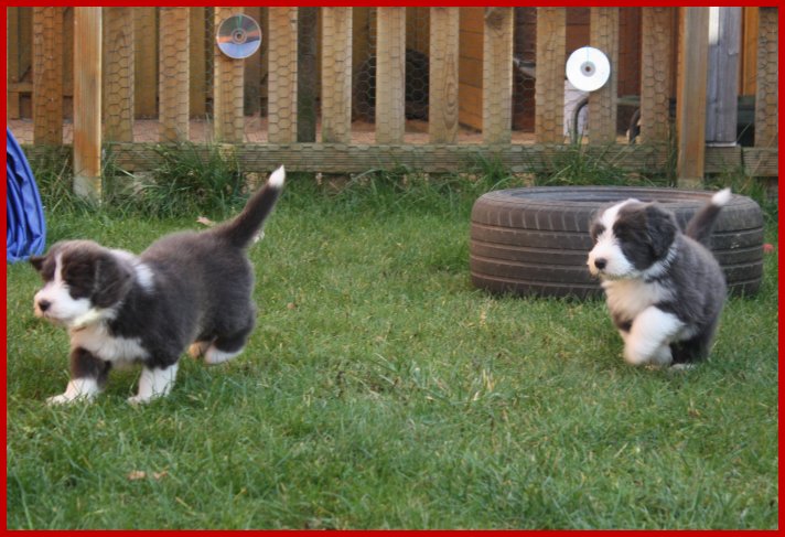 | Da die zuckersüßen Sechs so viel Spaß an ihrem Ausflug ins Hundegehege hatten und ja auch langsam "große" Beardies werden, werden ihre Ausflüge ins Hundegehege ab jetzt täglich stattfinden und langsam auf drei bis viermal für 30 bis 40 Minuten gesteigert; so das sie mehrmals täglich durch das Hundegehege flitzen können und dort viele neue "Turngeräte", Untergründe, Spielzeug und "gefährliche" Sachen wie Flatterbänder, Planen, Becherschreck und dergleichen kennen lernen!!! |