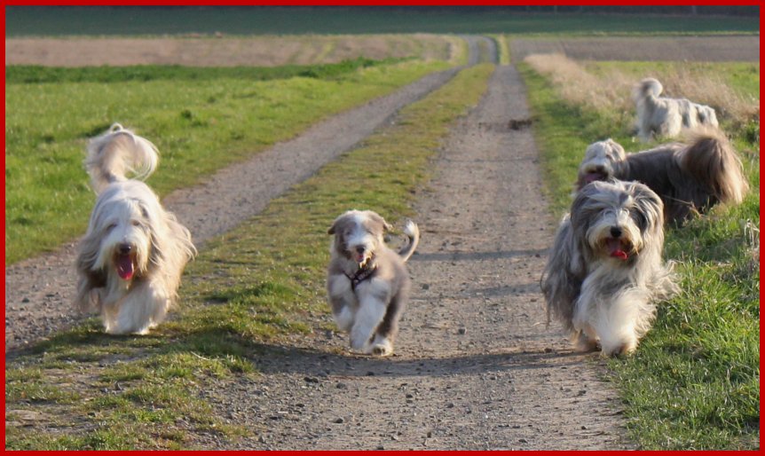 | Na, dann will ich Euch gar nicht lange was erzählen und wir schauen uns gleich die schönen Bilder vom ersten Spaziergang unserer 6 Glücksbärchen mit einem Teil von uns an!!! |
