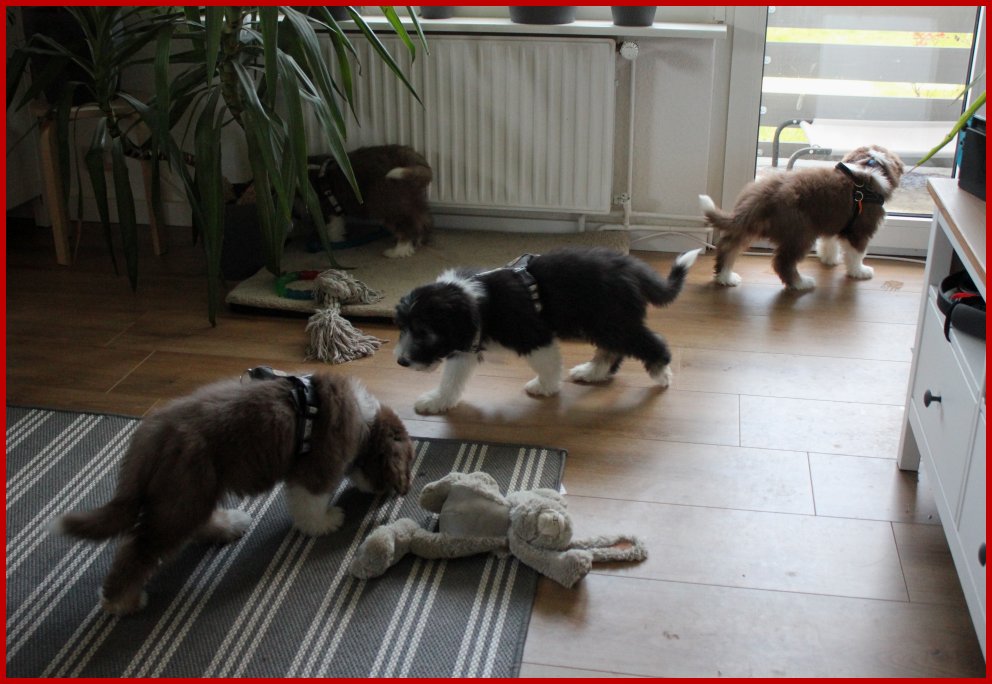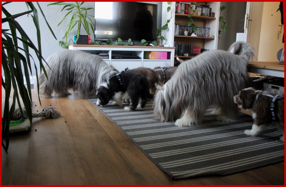 | Unseren Zweibeinern ist es unheimlich wichtig, das unsere Babys möglichst viel im vertrauten Rudelverbund kennen lernen und so gut geprägt in ein neues Leben mit ihren zukünftigen Zweibeinern starten können. |