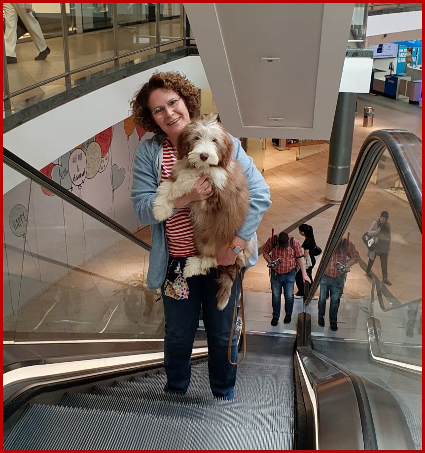 | Da wurde dann Fahrstuhl & Rolltreppe gefahren, rutschige Fliesen und Glasbalustraden kennen gelernt, Springbrunnen erkundet, das ein oder andere Geschäft angeschaut, haben ganz viele Menschen kennen gelernt und wurden ordentlich gekuschelt und konnten viele Küsschen verteilen! |