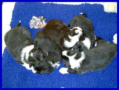 | Seit zwei Tagen gibt es für die "Kleinen" noch Welpenmilch zusätzlich und sie hauen richtig rein (so verfressen, wie alle von Anfang an sind, war das ja auch nicht anders zu erwarten)!!! |
