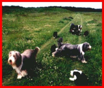 | Unser Frauchen sagt immer, das sie es unheimlich geniest mit all Ihren großen und kleinen Beardies und Herrchen ganz alleine den ersten richtigen Spaziergang der Kleinen zu machen. Meistens rennt sie erst mit uns rum, um dann ins Gras zu fallen und nur noch Freudentränen zu lachen, weil es zu lustig und schön ist zu sehen wie die Kleinen zum ersten mal in ihrem Leben die große, weite Welt erkunden! Für sie ist dieser Spaziergang immer der erste Schritt vom Abschied, denn meistens gehen die ersten ein paar Stunden später schon in ihr neues Zuhause!!! |