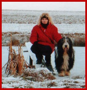 | Und das ist meine Schwester "Flo", die Ihr hier, zusammen mit ihrem Frauchen Sabine, mit 8 1/2 Monaten, im verschneiten Wolfenbüttler Wald seht! |