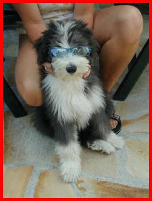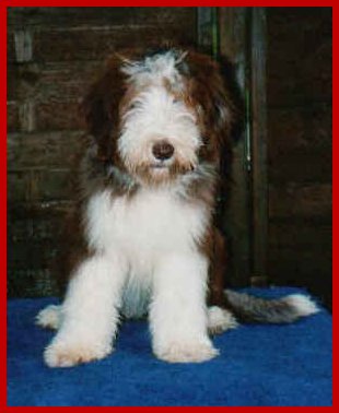 Und das ist "Fanny", mit 7 1/2 Monaten, als Weihnachtsbeardie verkleidet!!! | ||