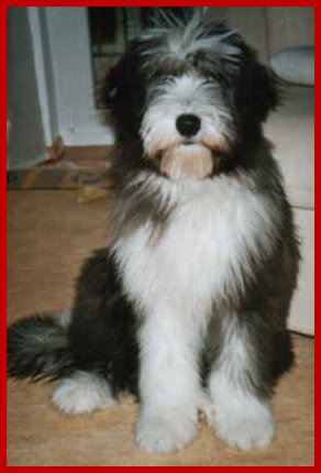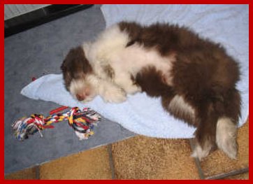 | Auf diesem Bild ist er schon 5 1/2 Monate alt und ziemlich müde, nach der Welpengruppe! |